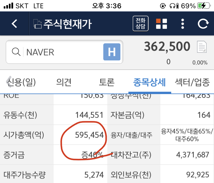 네이버 59조 5,454억원